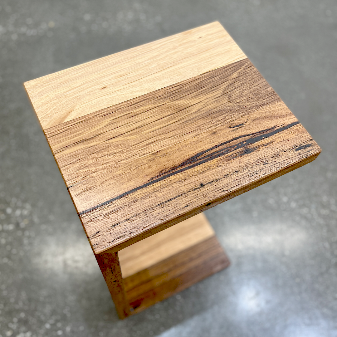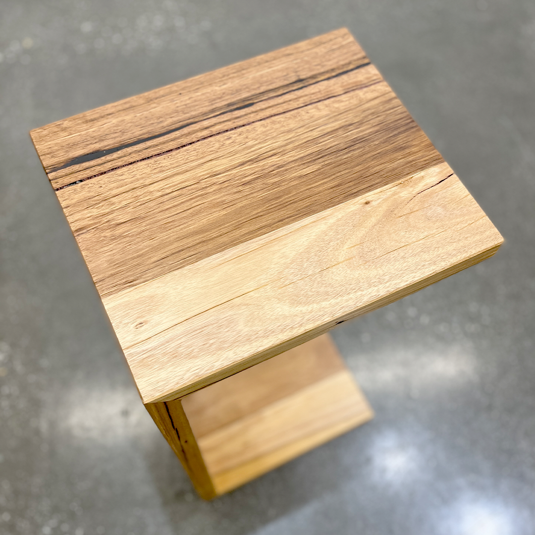 Handcrafted in Melbourne from reclaimed messmate, each piece carries the natural beauty of the original tree, showcasing unique grain patterns, knots, and markings that make every table one of a kind.