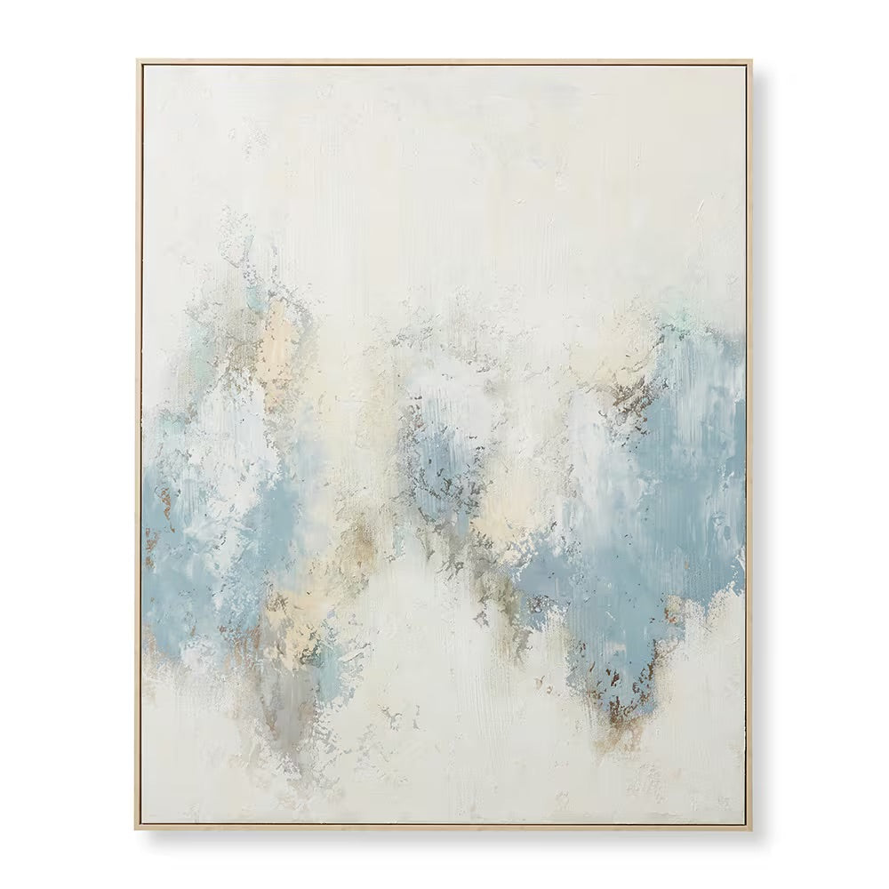 Enhance interiors with beautiful and engaging wall art, in neutral and powder blue tones.