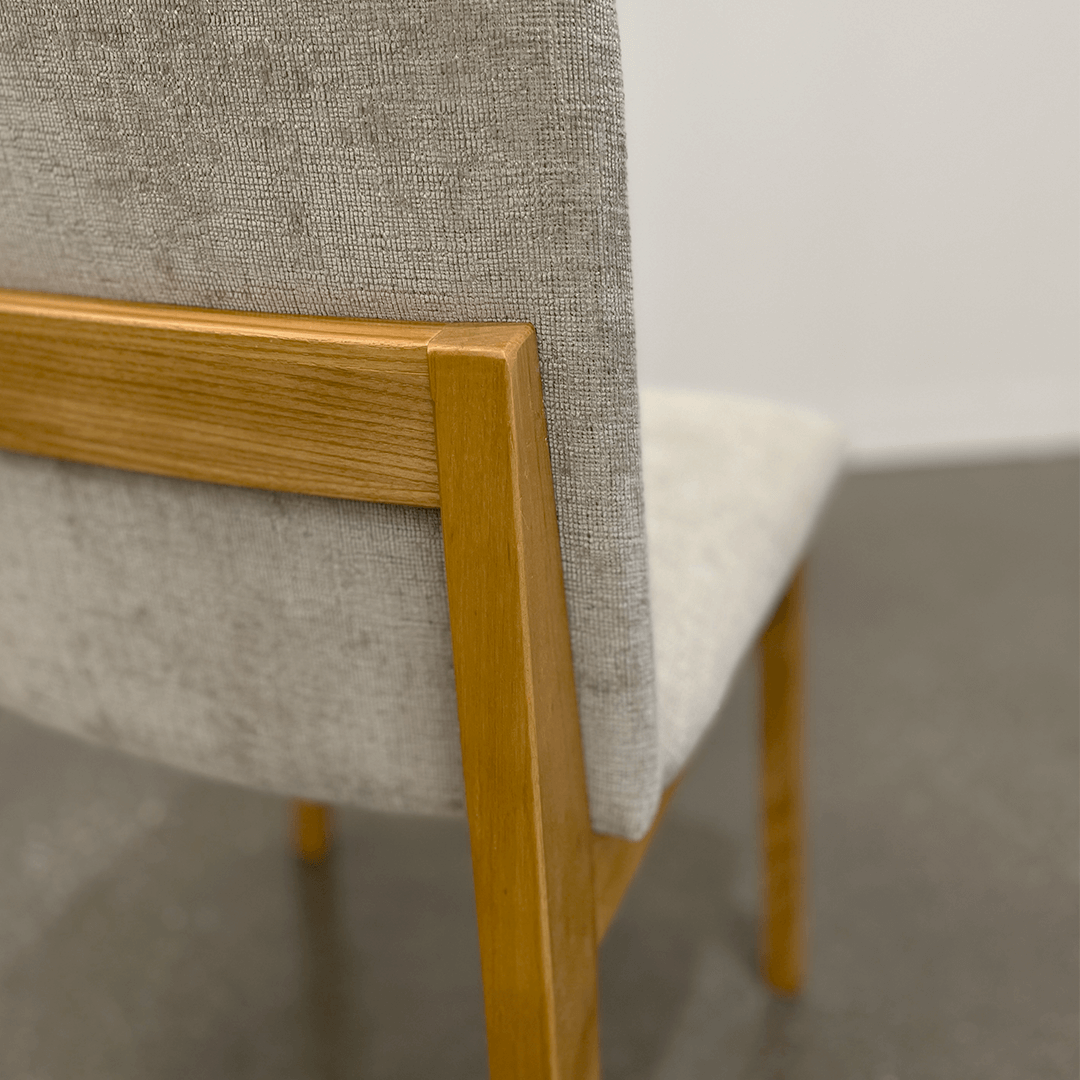 The Coolum Dining Chair is proudly Australian made, crafted from high-quality American White Ash and upholstered with customised fabric options. Available in various fabric selections, the Coolum Chair is designed to last a lifetime.