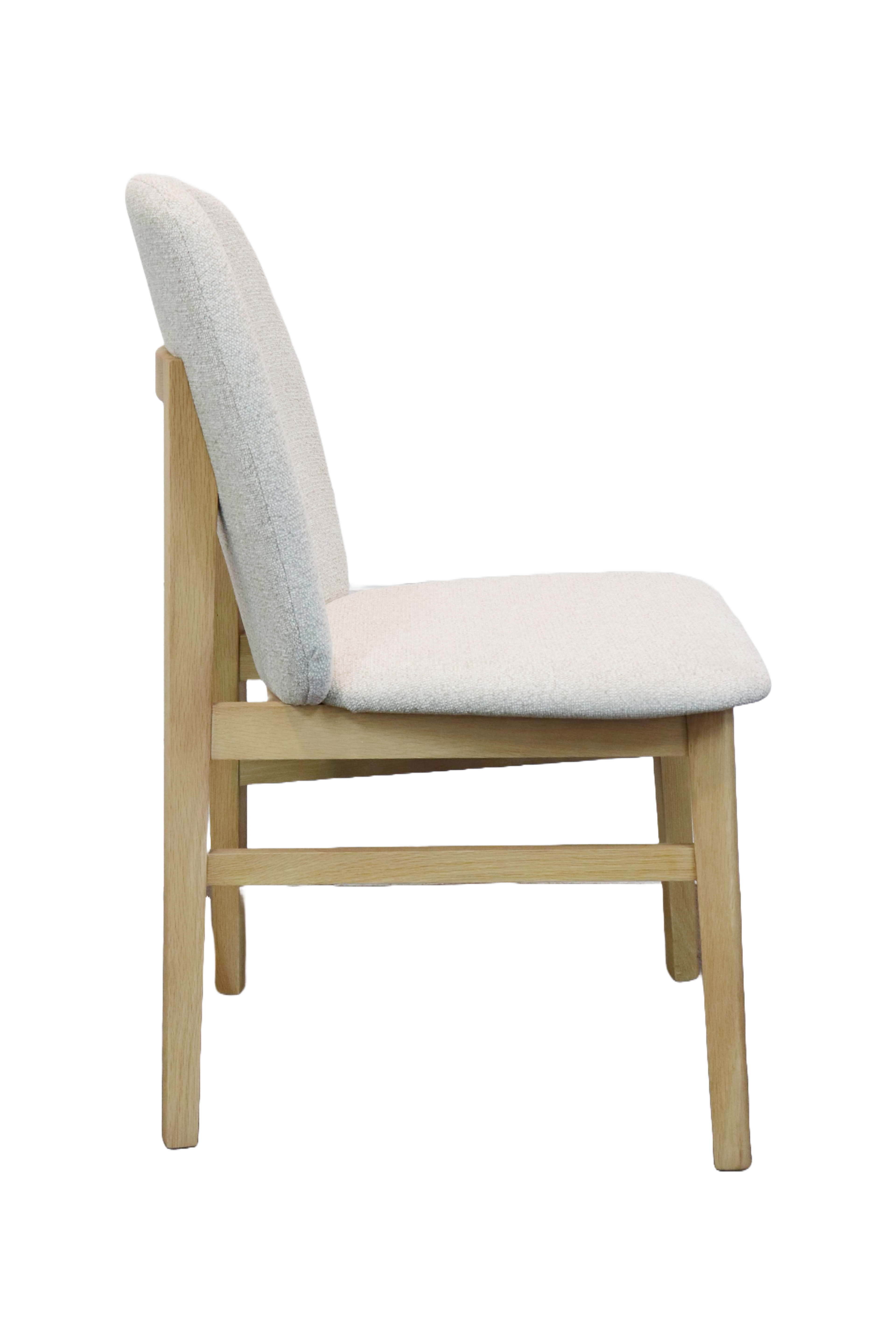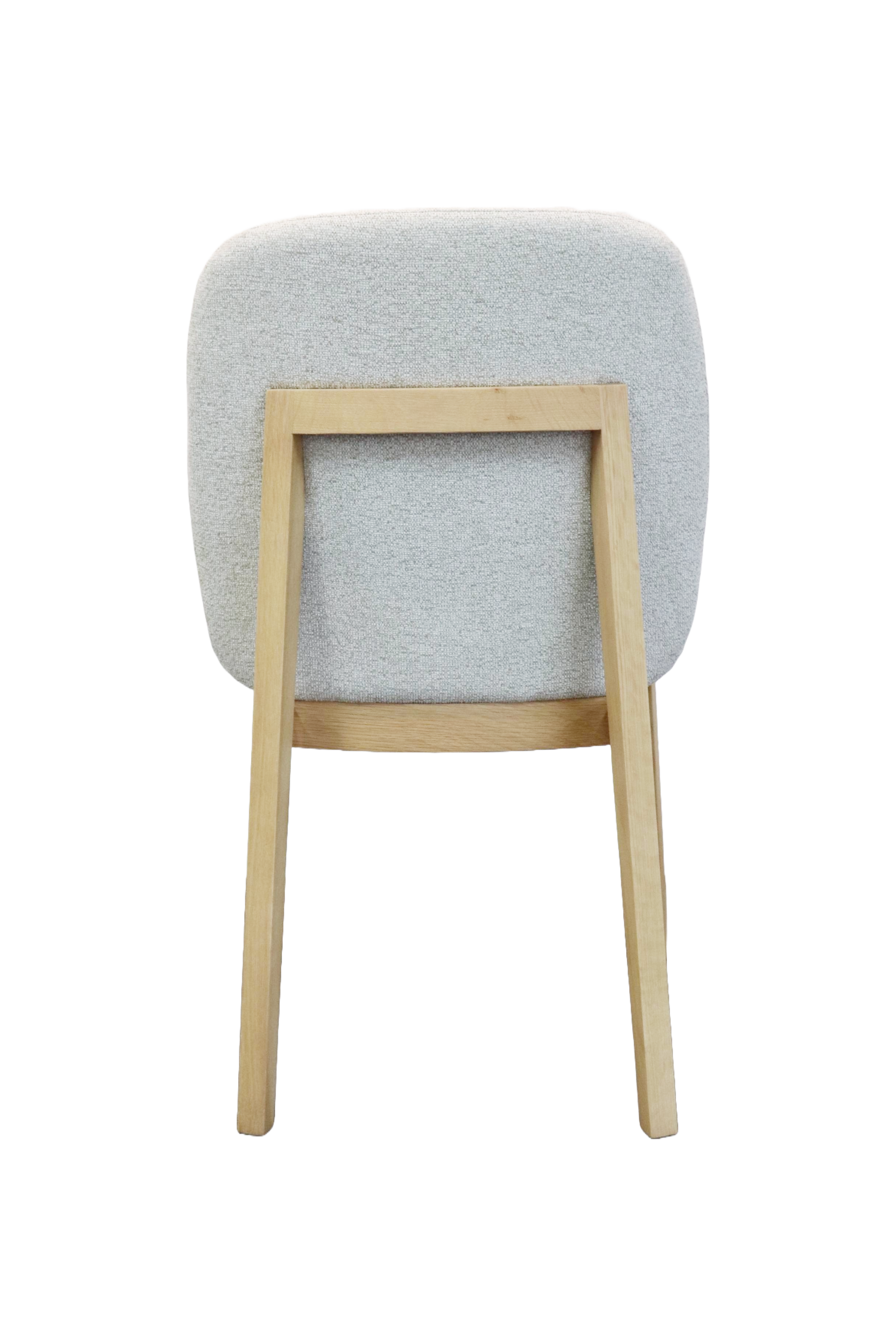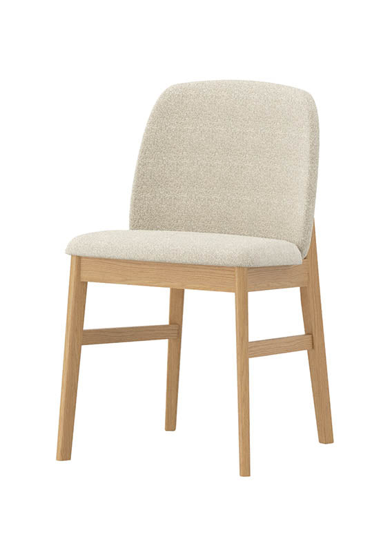 Crafted from Natural Oak, with a generously cushioned seat and backrest, upholstered in a soft, textured fabric, offering everyday comfort.