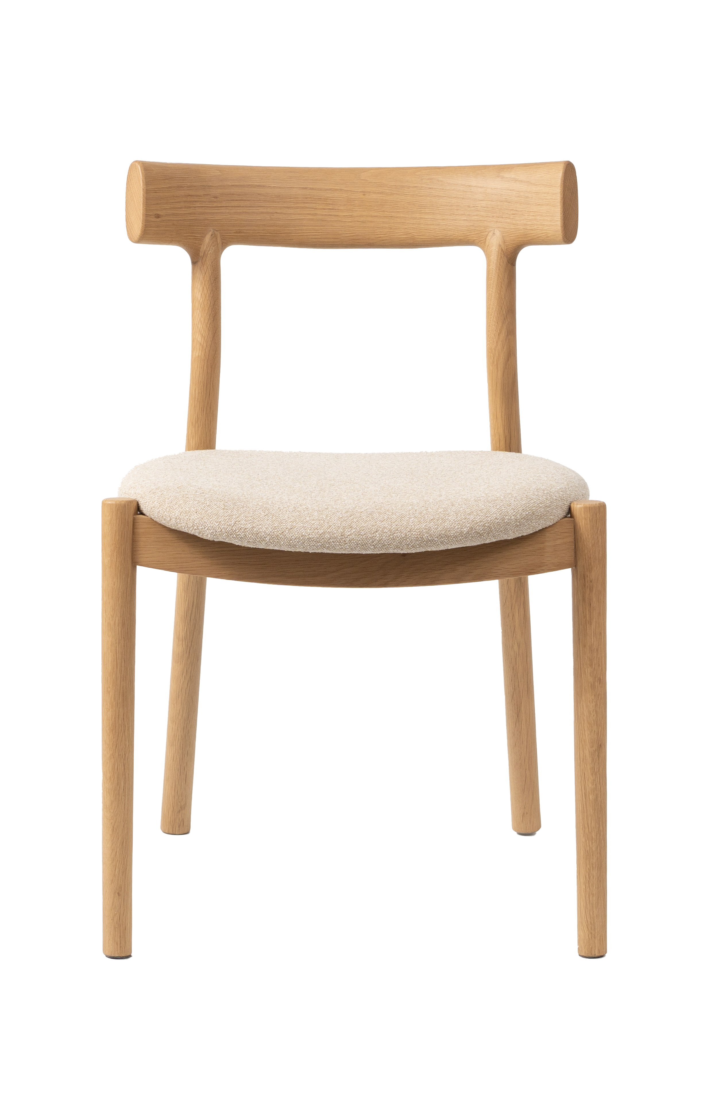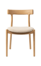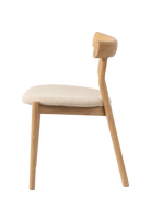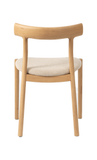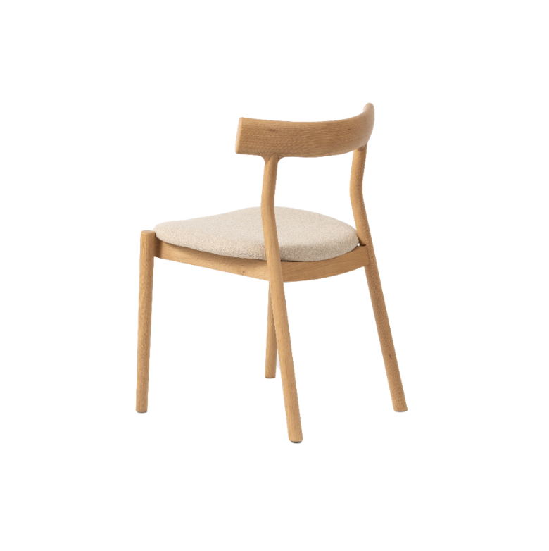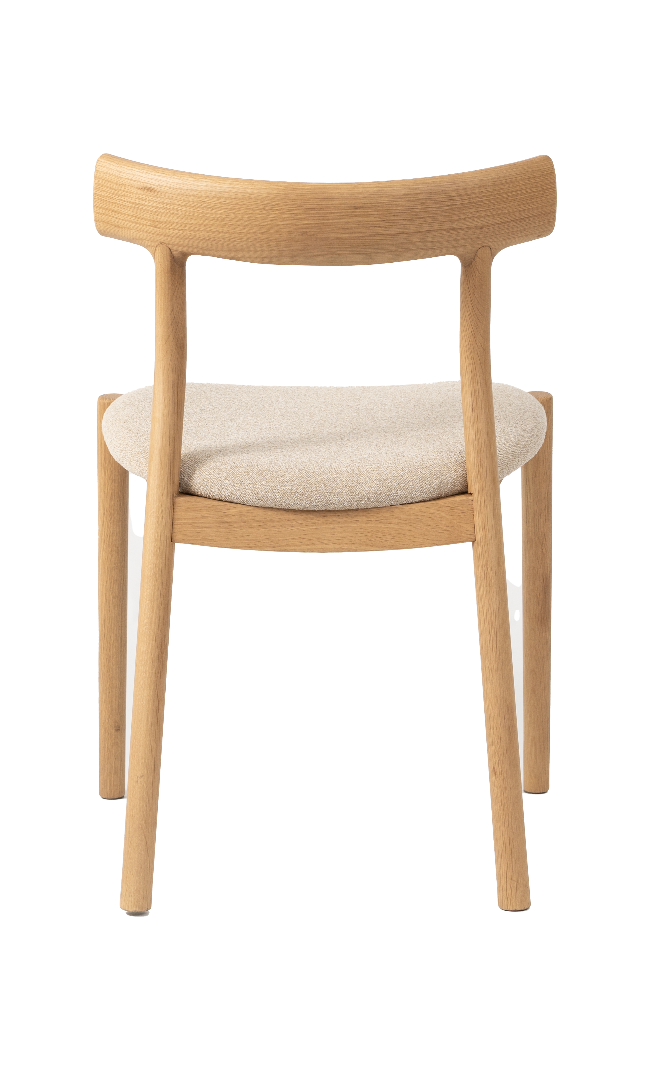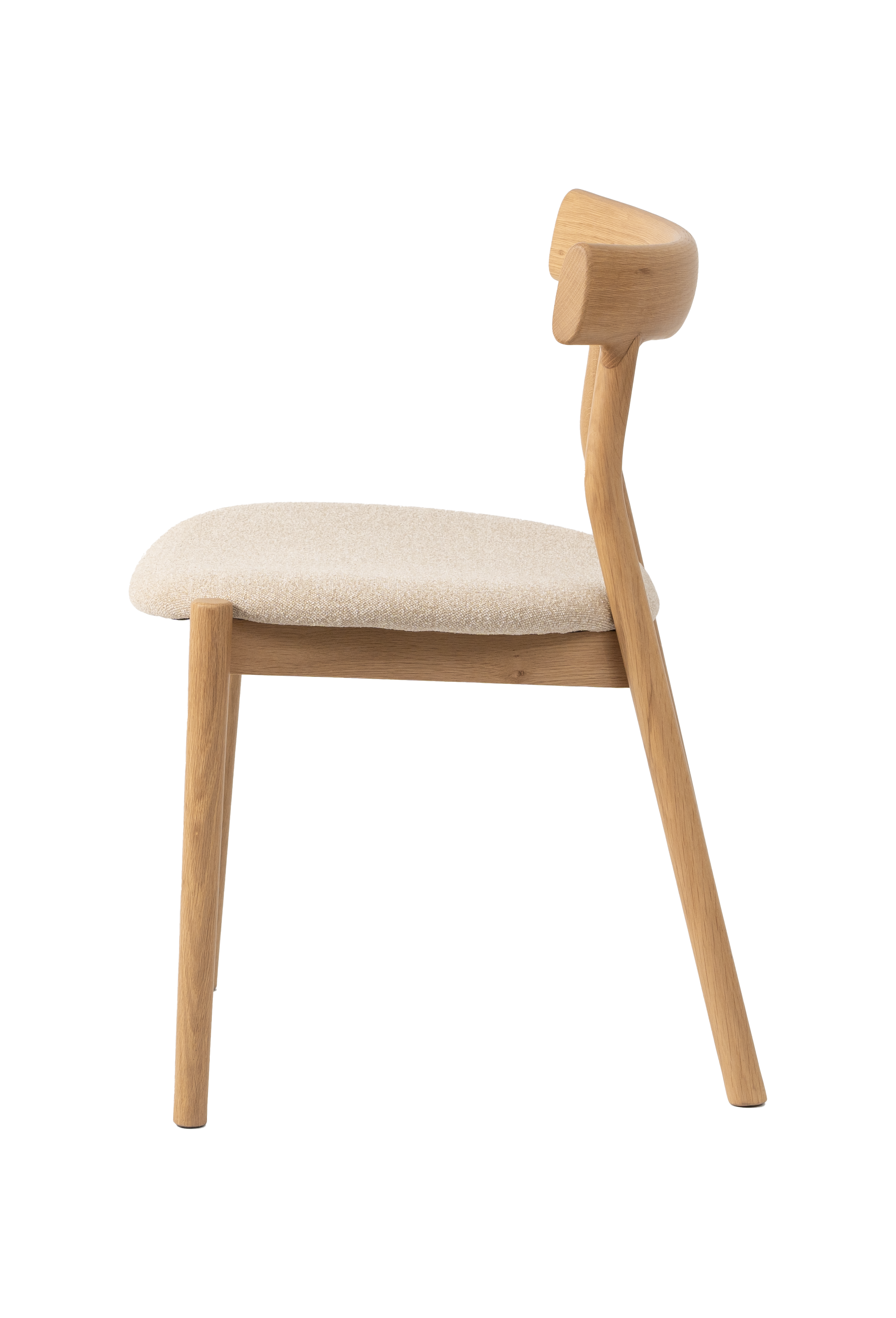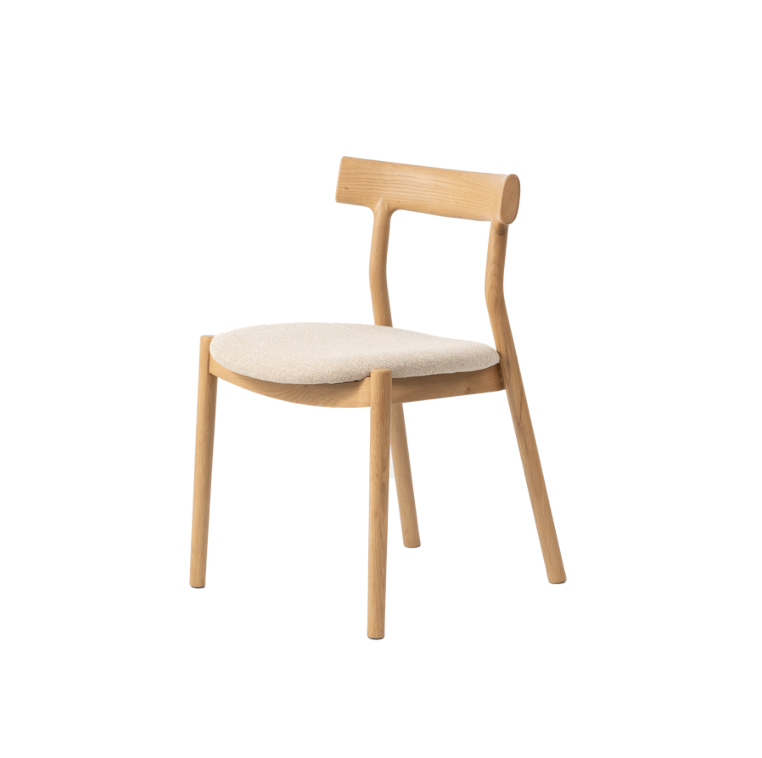 A soft and elegant timber dining chair. A curved backrest seamlessly joins into the leg to create this seamless frame. Upholstered seat provides comfrot and warmth in the subtle beige fabric.