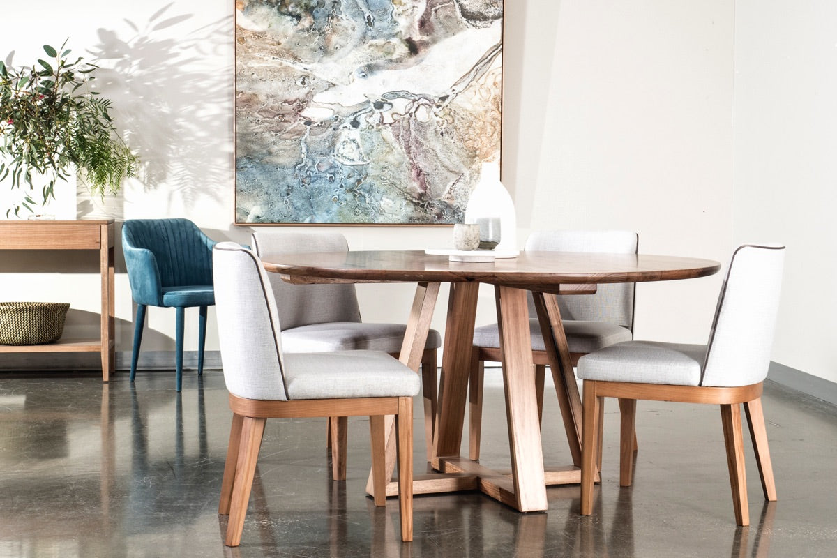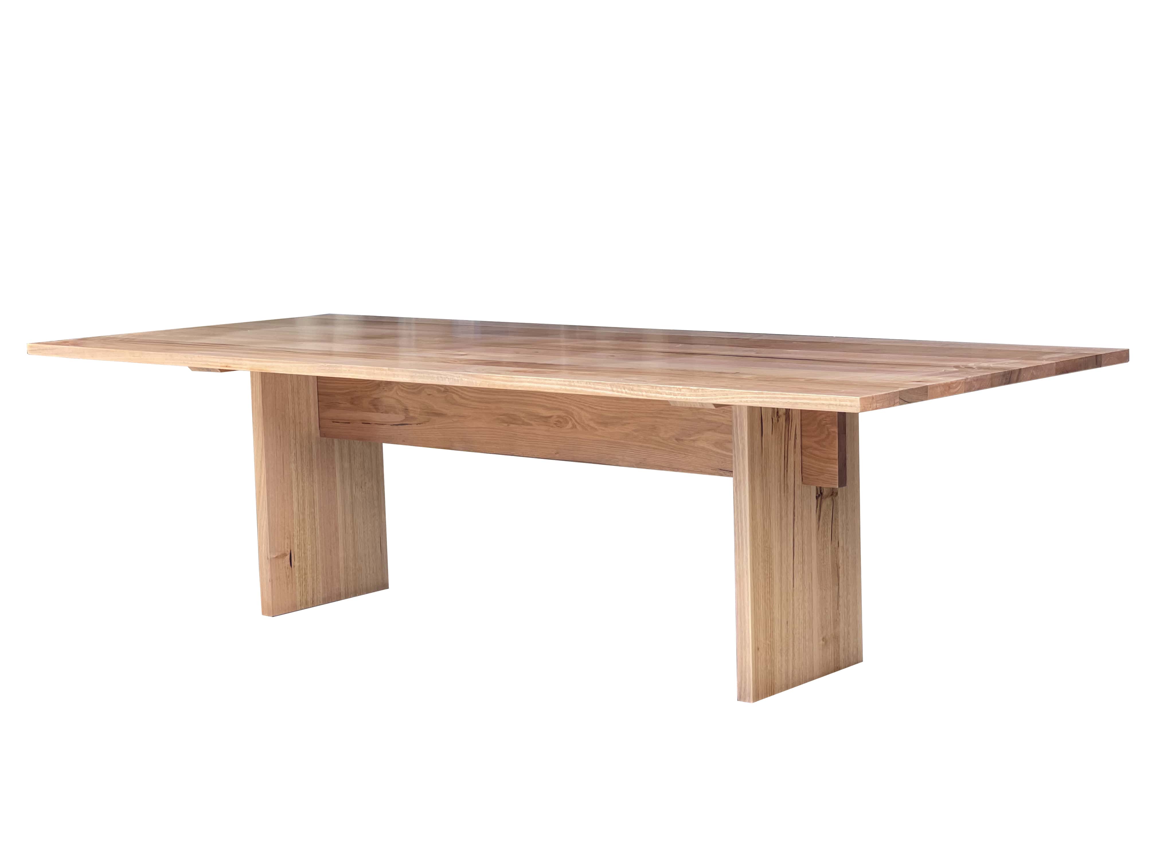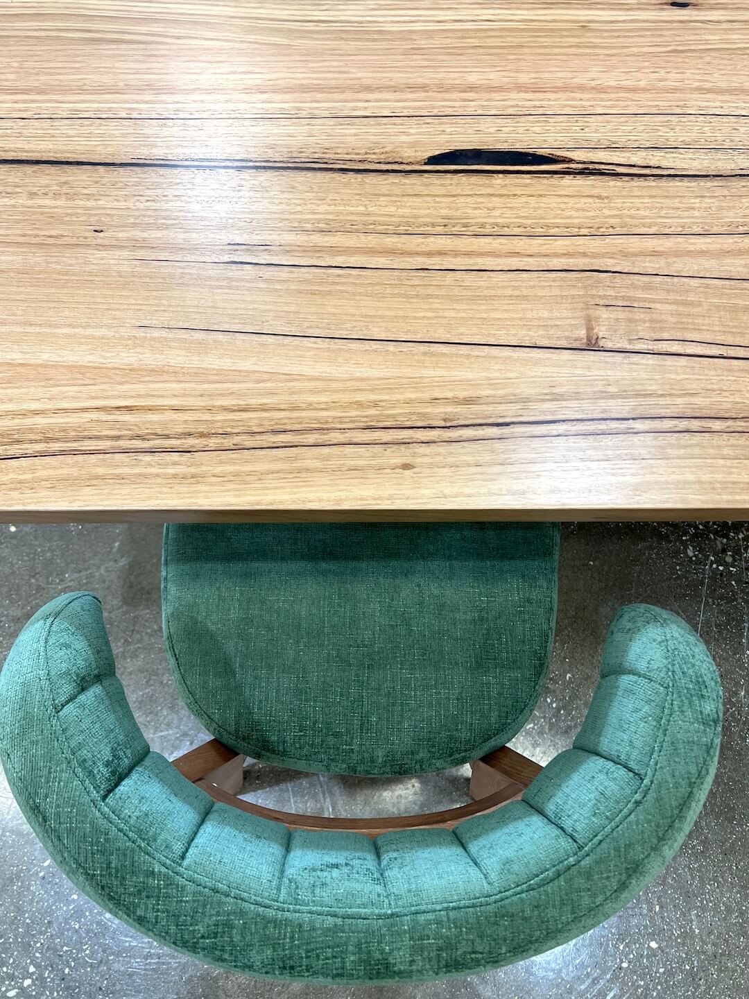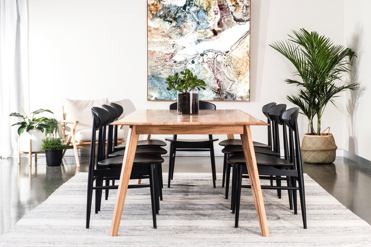 Explore our collection of Australian timber dining tables, chairs, buffets and consoles, designed to bring warmth and character to your home. Each piece is crafted locally in Melbourne from responsibly sourced new and recycled timbers, including Messmate, Tasmanian Oak, Spotted Gum, Victorian Ash and Mountain Ash. From intimate settings to large-scale dining, we offer a variety of sizes and finishes. Pair your table with our customisable dining chairs — select from an extensive range of upholstered designs and fabrics, with our experts here to guide you.