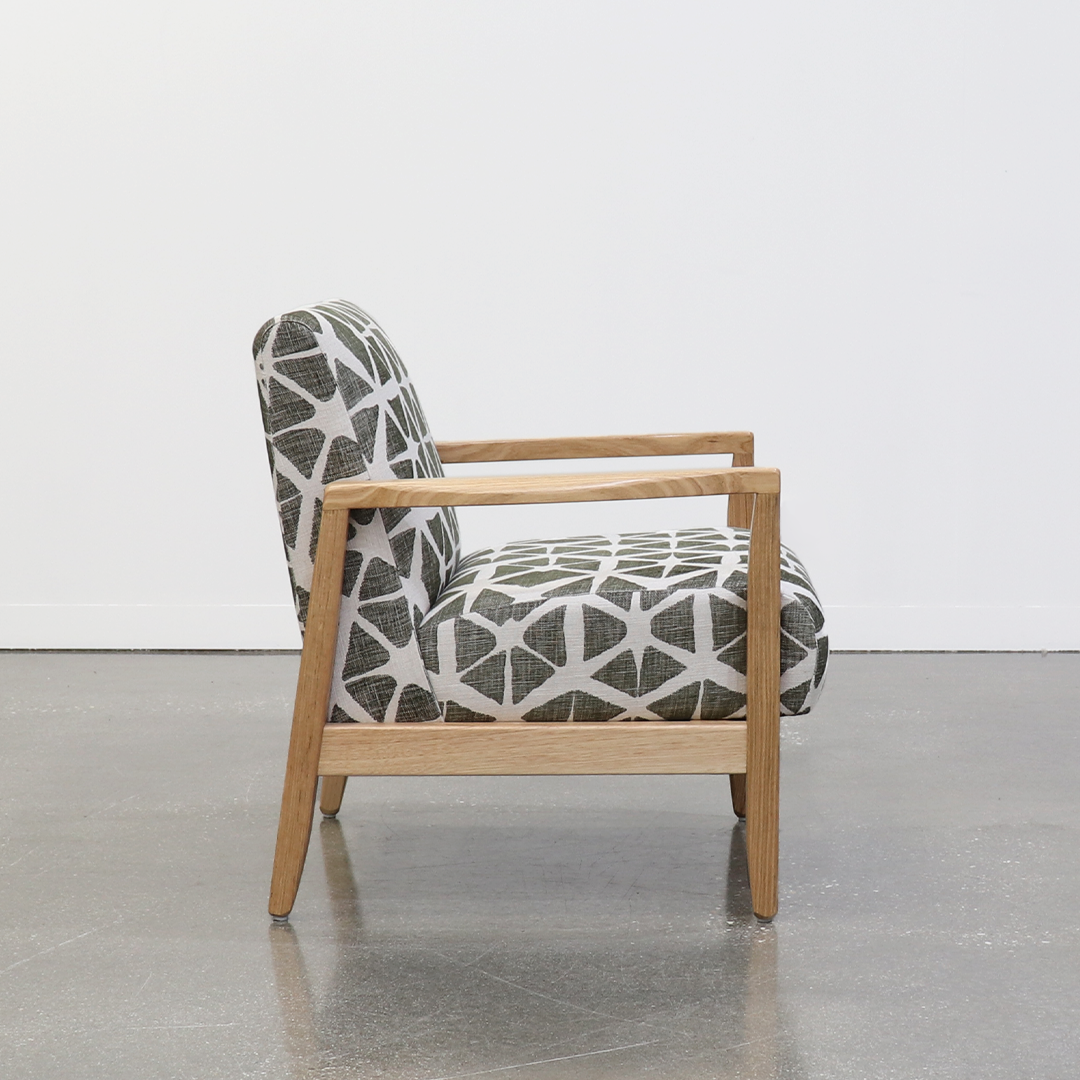 The Oxley occasional chair's solid American Oak frame offers an elegant and sophisticated look. The ideal piece to finish off a living room in any contemporary home. It has details you'll appreciate from every angle, and is extremely comfortable.