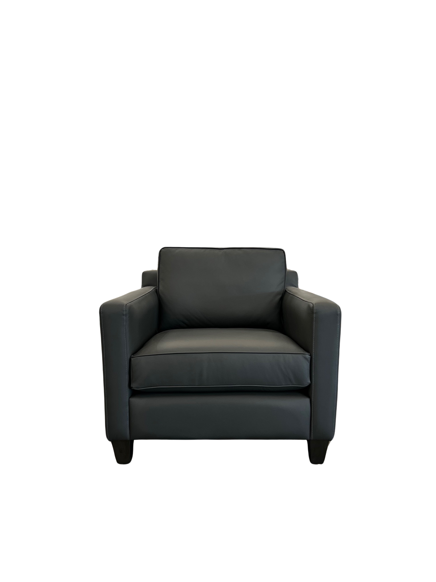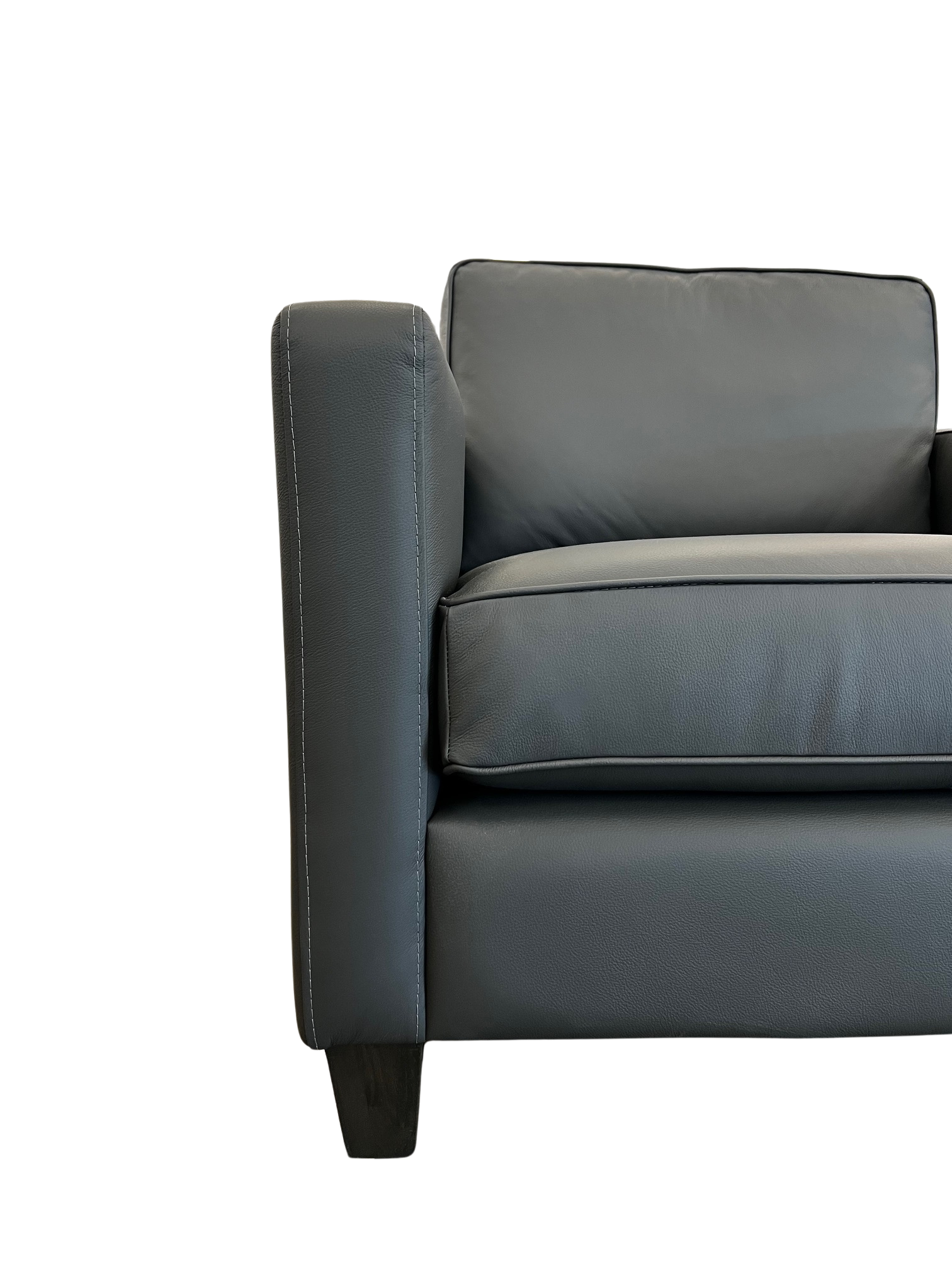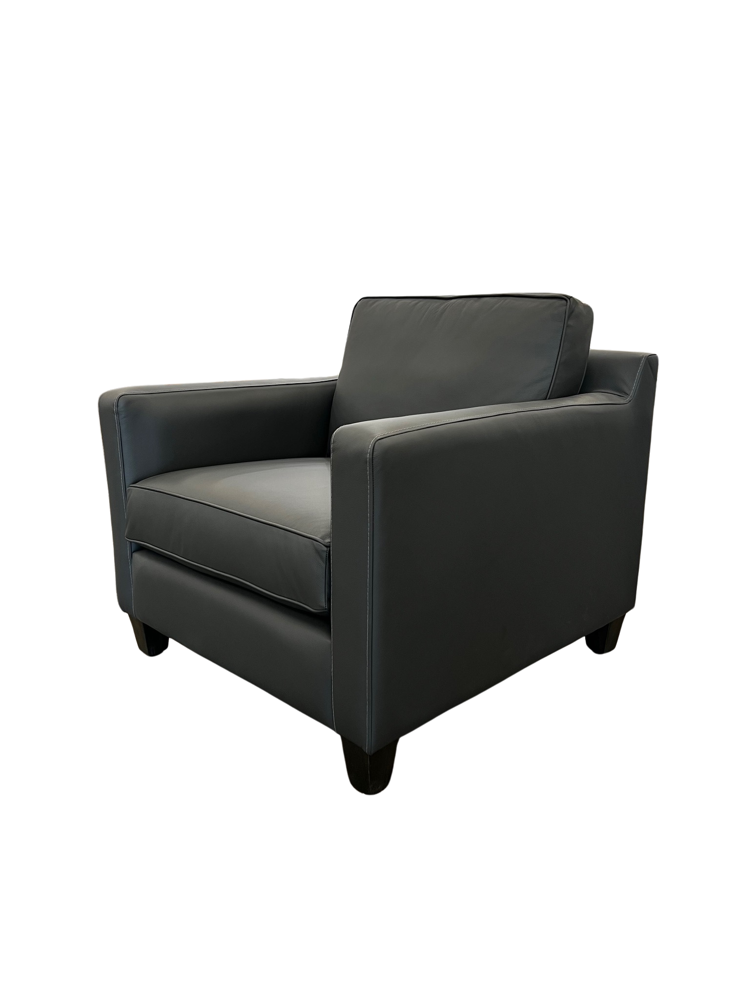As shown: Harper chair in Leather Italia - Matador steel and legs in smoke stain.
