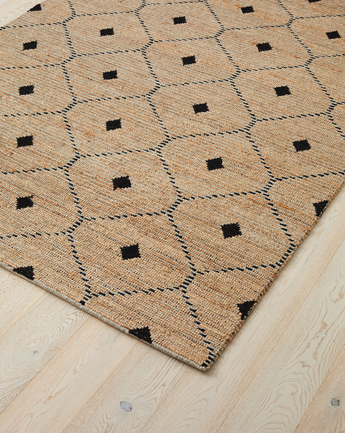With Moroccan inspiration, the Sandstorm colourway features a bold Ogee motif in black. Rich in character, this rug delivers plenty of textural and visual interest.