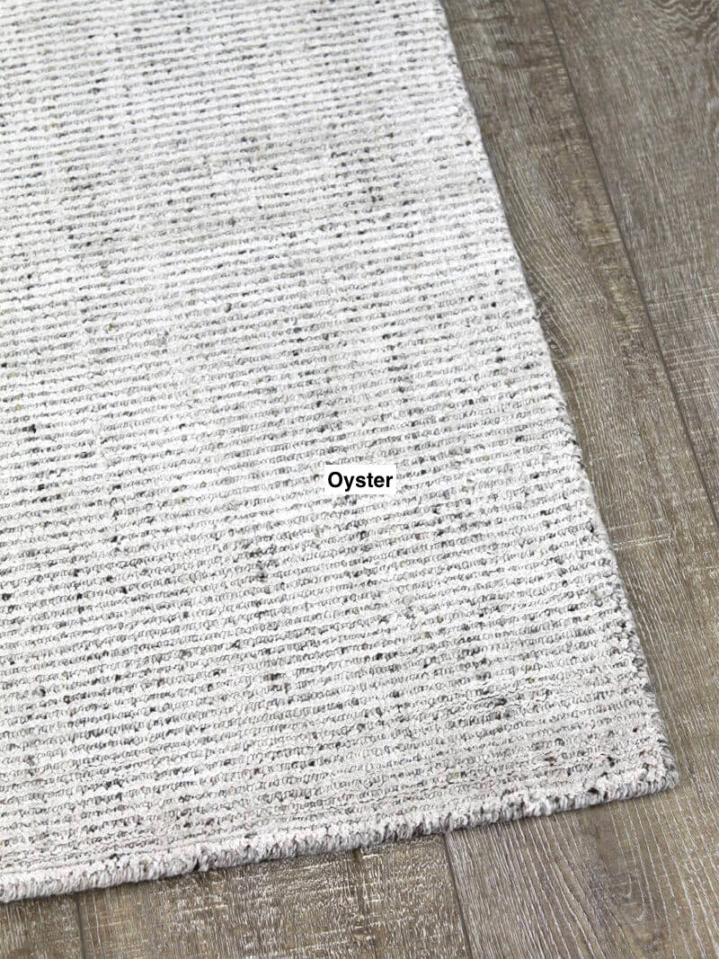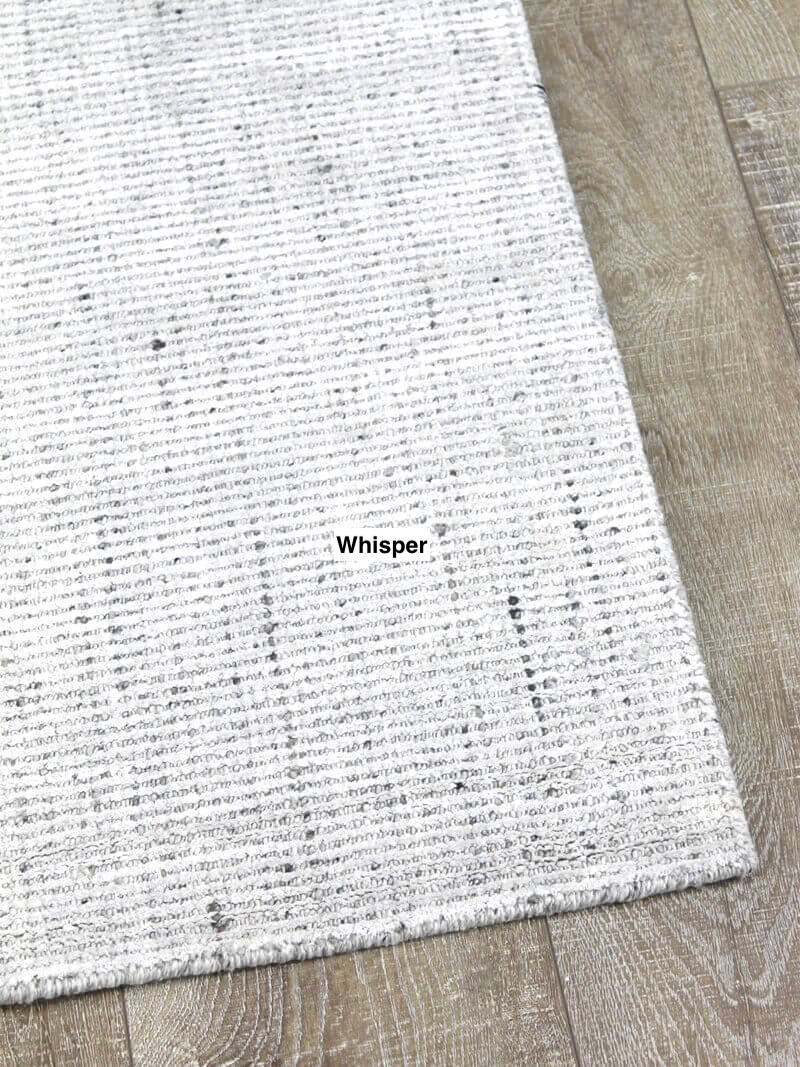 A handloom knotted contemporary wool speckle rug in beautiful neutral tones. Soft, durable and ideal for family living. Available in Fudge, Olice, Oyster and Whisper.