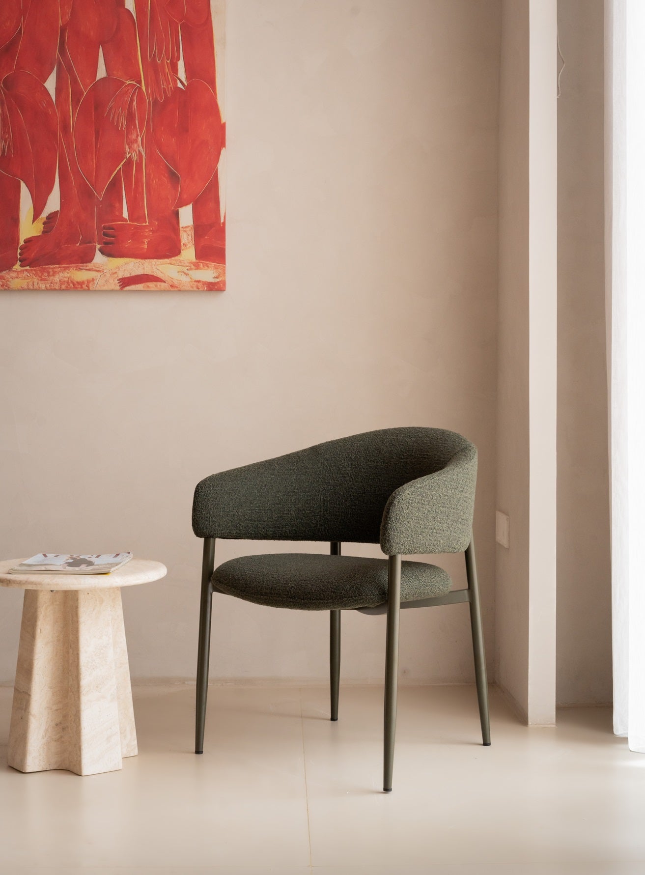 Baxter is a generously sized dining chair, the durable steel frame offers a sturdy base, while the cushioned seat and back invite you to linger a little longer.