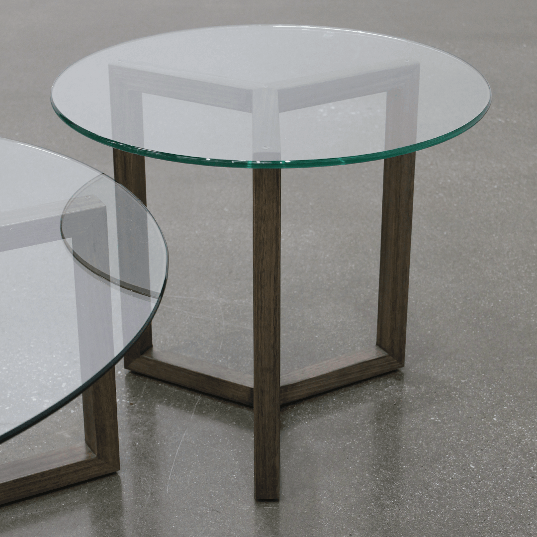 Our new Gembrook side/lamp table features a glass top and a beautiful Tasmanian Oak timber base. The base stain colour is fully customisable.