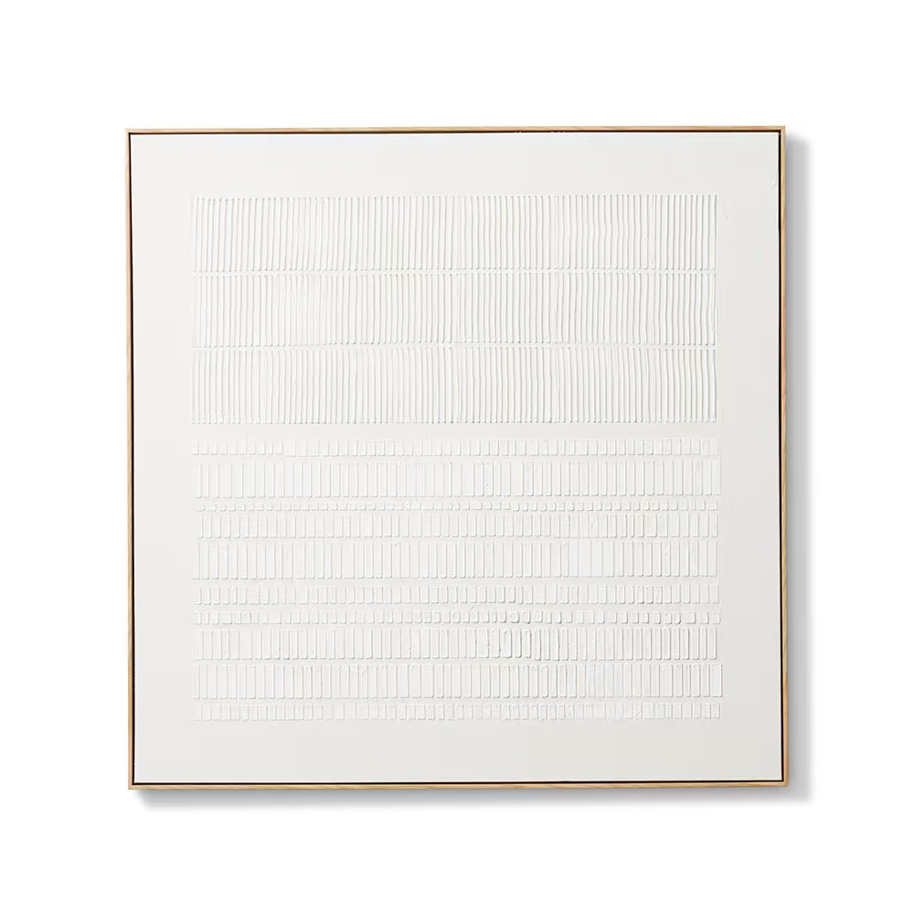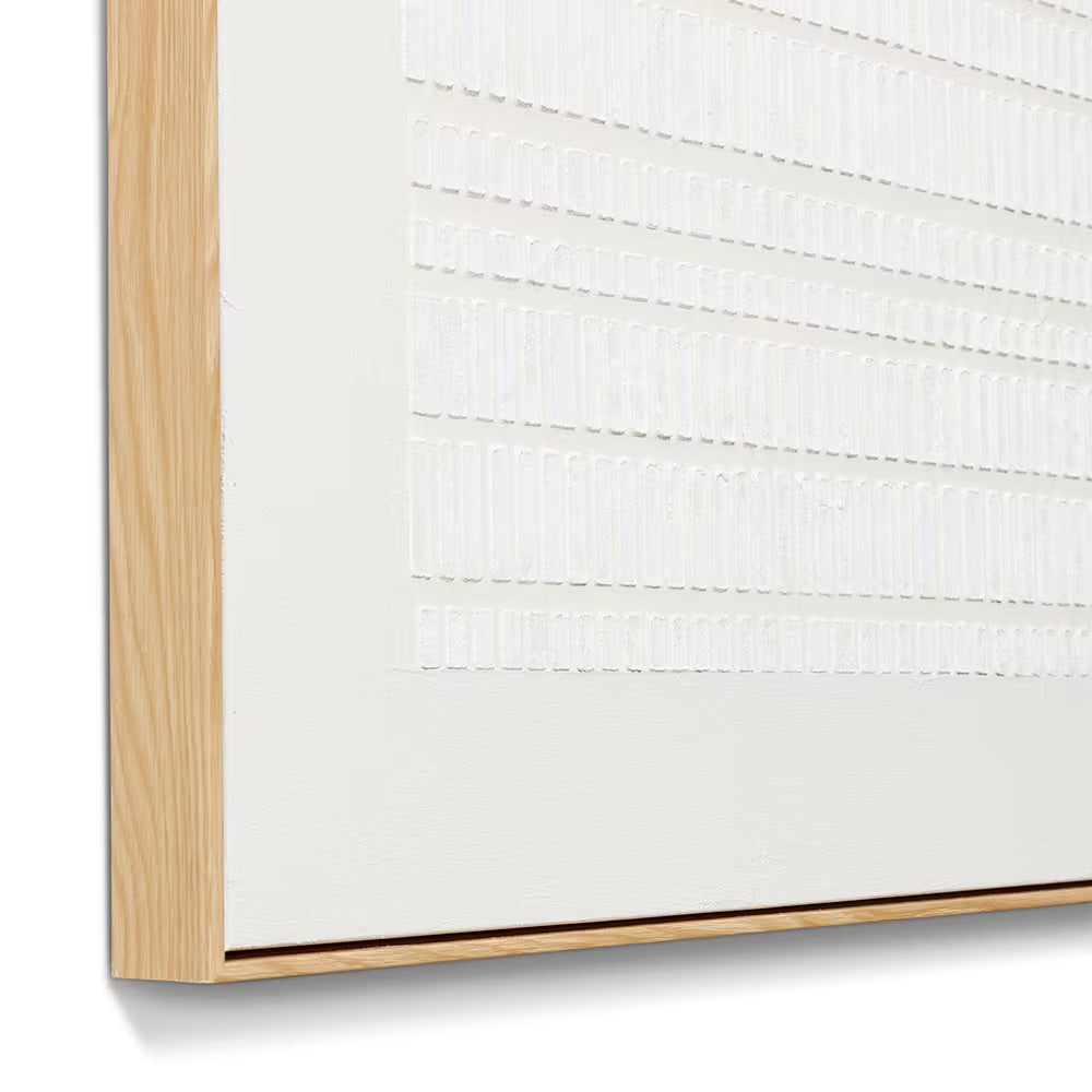 A refined statement in texture and depth, the Thiago Wall Art features intricate hand-applied patterns on a neutral canvas. Framed in slim oak, its minimalist design adds a subtle yet striking focal point to any space.